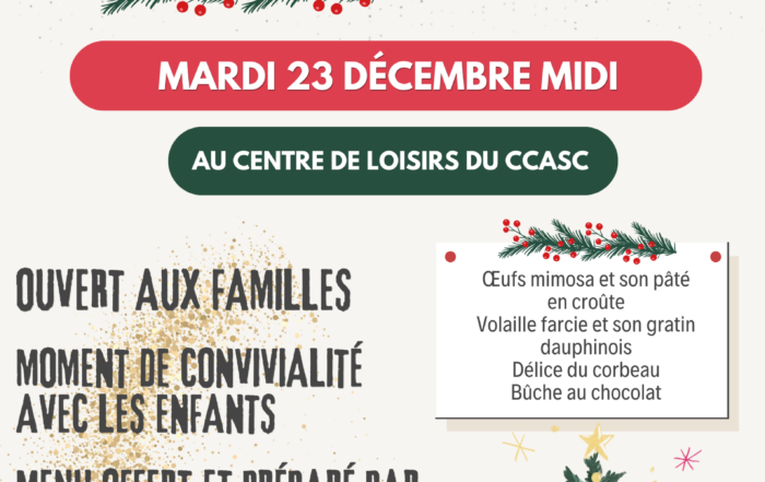 🎄 Le mardi 23 décembre à midi, venez partager un repas convivial avec les enfants au centre de loisirs du CCASC. Un moment chaleureux [...]