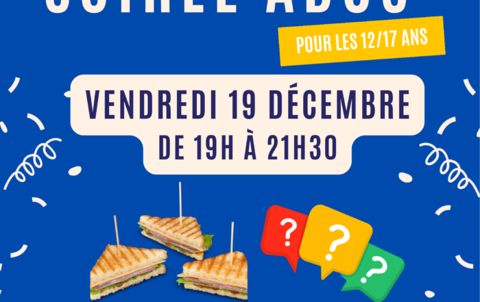 🔥 Croque-monsieur + Quiz = la soirée parfaite pour s’amuser entre ados ! Les 12/17 ans sont attendus pour une soirée pleine de rires [...]