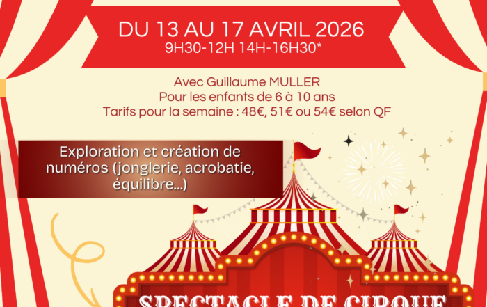🎪✨ Stage Cirque pour les 6–10 ans ! ✨🎪 Du 13 au 17 avril, nous proposons aux enfants de 6 à 10 ans de [...]