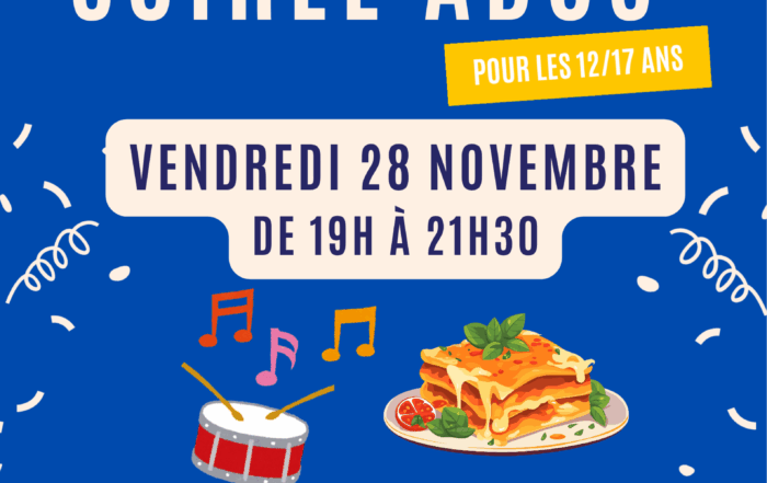 🎶 Soirée Lasagnes et Jeux musicaux 🎶Vendredi 28 novembre, rejoins-nous au CCASC pour une soirée entre ados. De 19h à 21h30 ! [...]